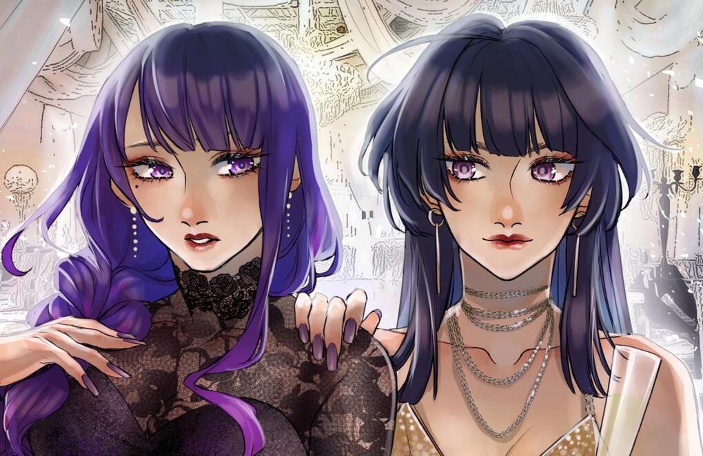 A crossover zine about the characters Raiden Mei from Honkai Impact and Raiden Ei from Genshin Impact.